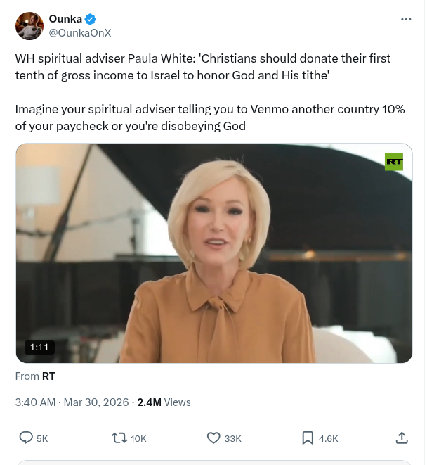 Imagine your spiritual adviser telling you to Venmo another country 10% of your paycheck or you’re disobeying God