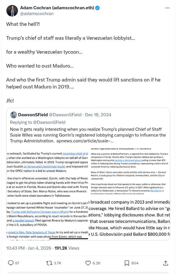 What The Hell?! Trump’s chief of staff was literally a Venezuelan lobbyist… for a wealthy Venezuelan tycoon.. Who wanted to oust Maduro…