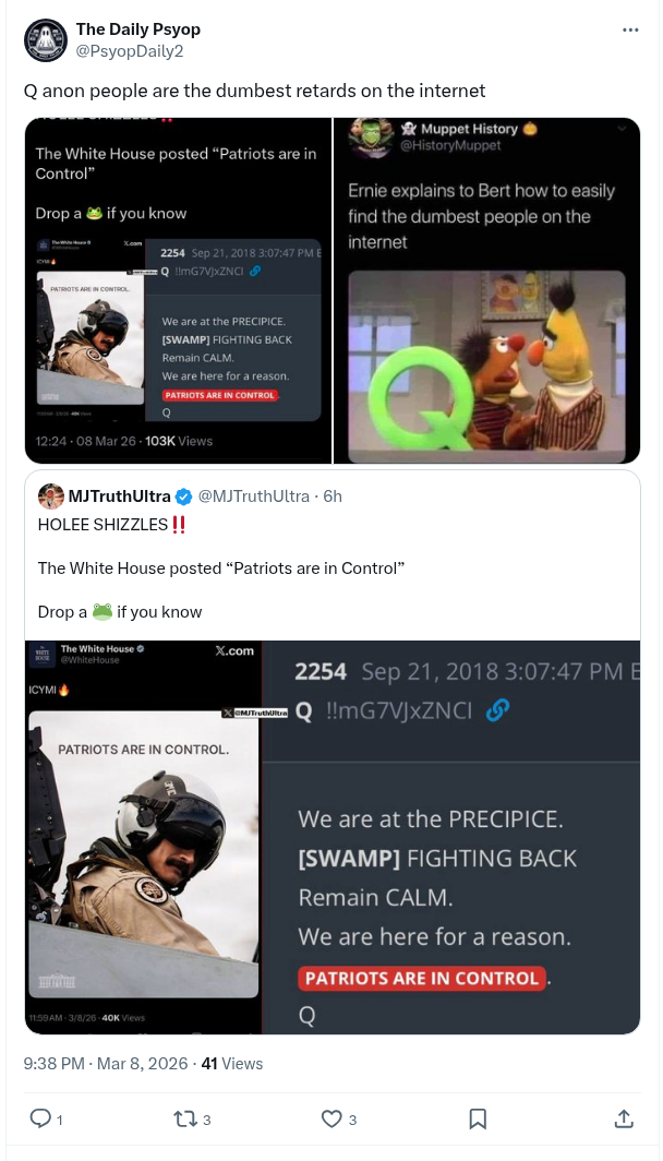 White House Makes Post Stating “Patriots Are In Control” – Q Psyop Pandering Continues as Epstein Handlers Prepare to Nuke Iran – The Daily Psyop